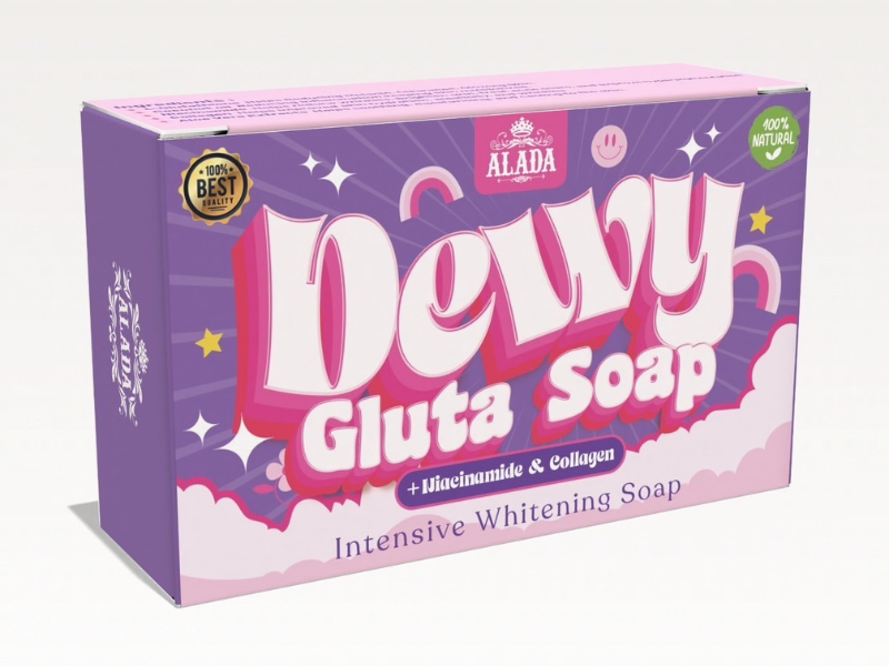 ALADA DEWY GLUTA SOAP High-end soap which contains the selected premium extracts that are 10 times richer that the general formula. The soap helps to whiten the skin at both arms and legs areas, eliminate scars, and minimize dark spots or uneven skin color. More importantly, the soap helps to eliminate dead skin cells and nourish the skin in order to make the skin smooth, soft and clear in one step. It can be used with both body and facial skin.